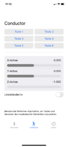 Tasten und Sensor der MusicalConductor-App